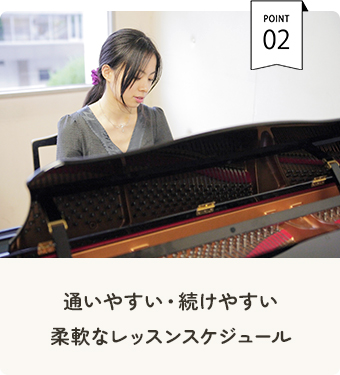 平日・土日祝も対応。中学生以上の方は1レッスン制なので、自身の予定に合わせたレッスンが可能です。